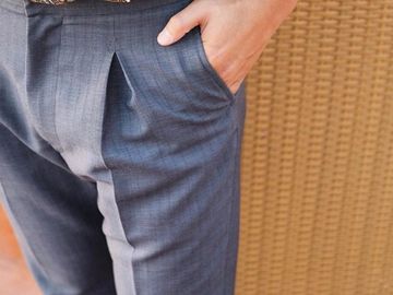 Details: 2-pleat, side & back pockets, slim fit