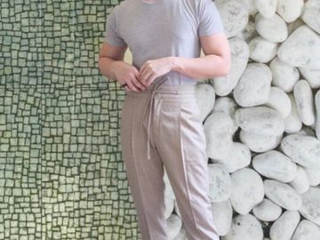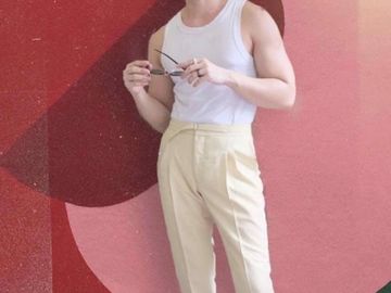 Details: 2-pleat, adjuster belt, side & back pockets, slim fit